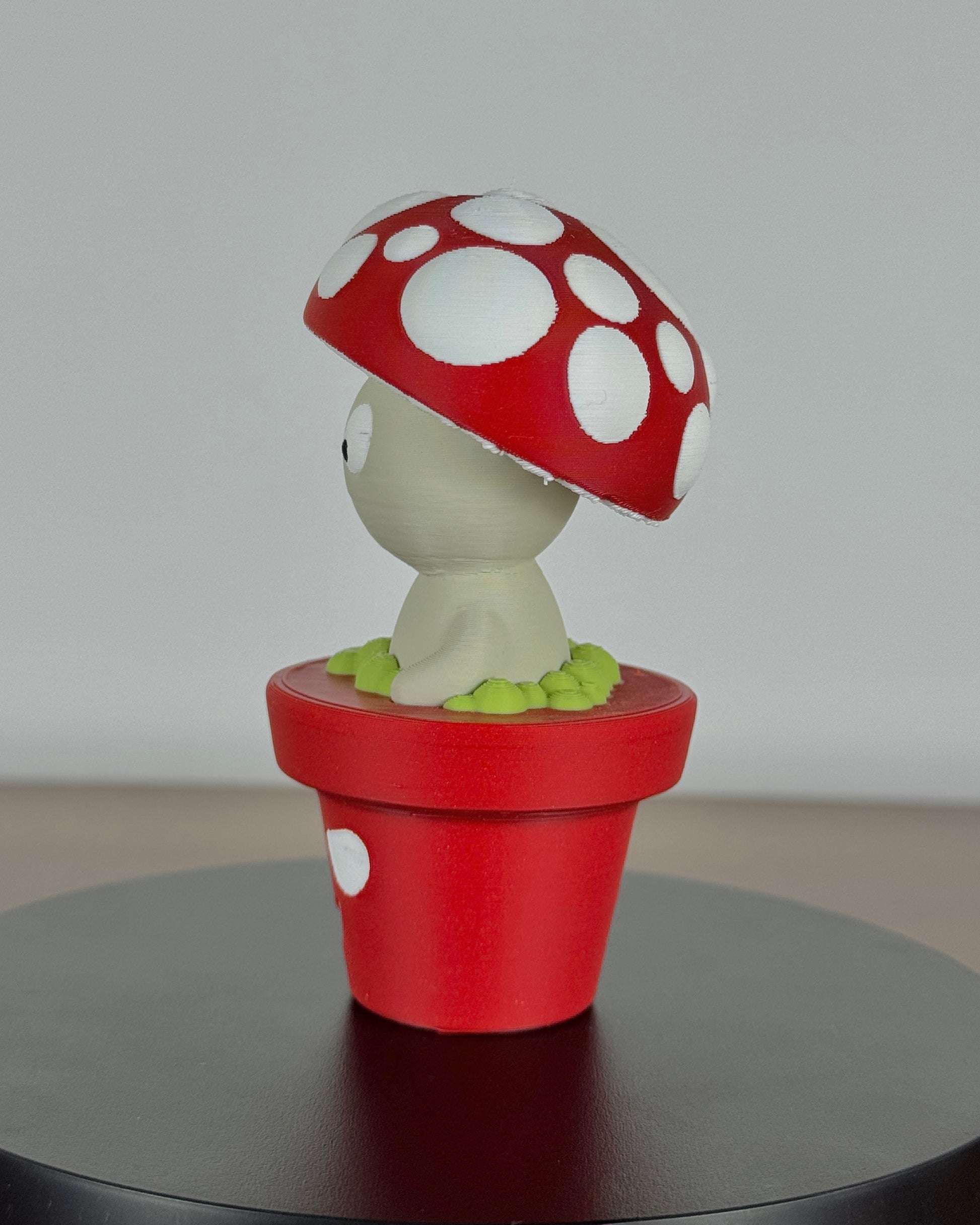 With his chubby cap, friendly smile, and cozy pot, Mushi adds a touch of charm and whimsy to any space. Crafted with high-quality multicolor 3D printing, every detail is designed to bring this playful little mushroom to life.